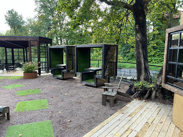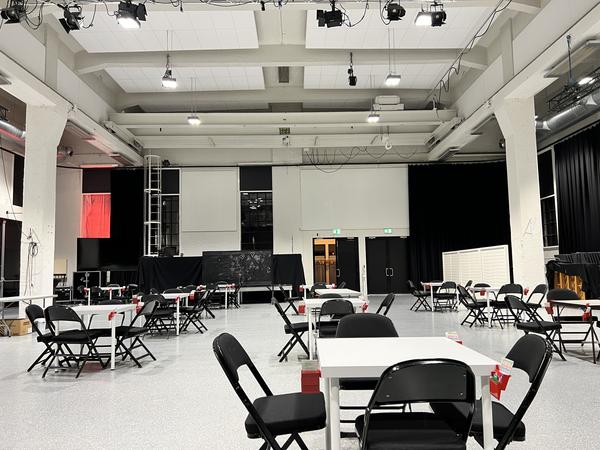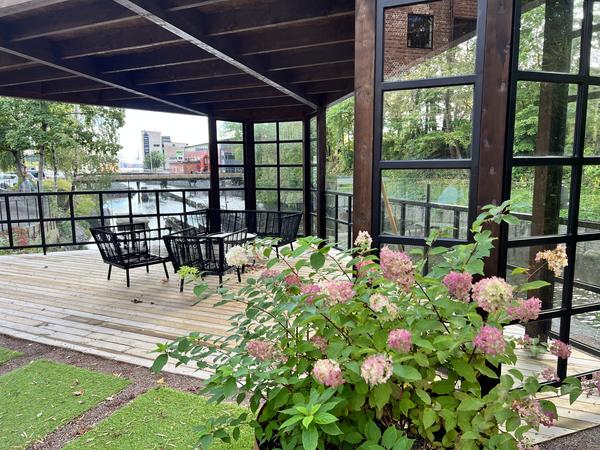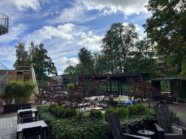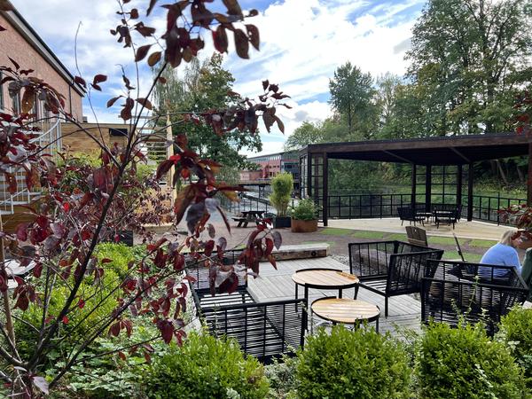 Det er høyt under taket, gode lysforhold og en nydelig bakhage for å nyte pausene.